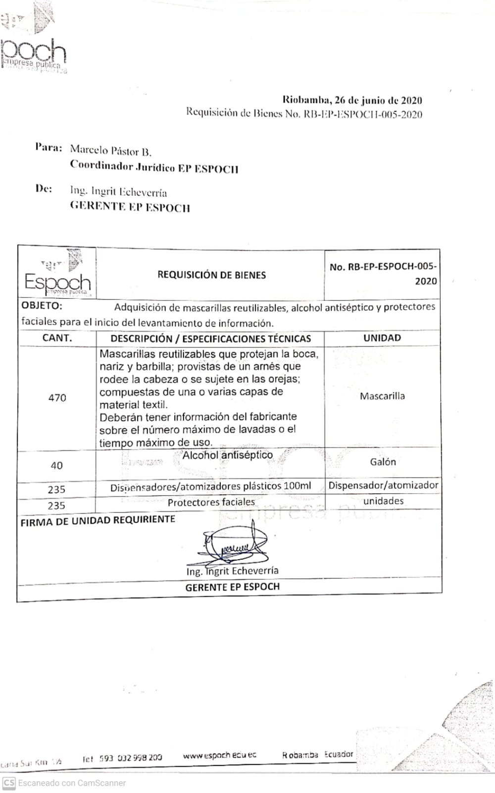 La Empresa Pública ESPOCH hace la cordial invitación a las personas naturales o jurídicas interesadas a presentar proformas para adquisición de material de bioseguridad.